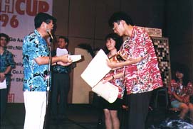 ユーモアたっぷりに司会を務めた白江治彦七段らの下馬評によると、優勝候補には小林親子ペアのほか、
