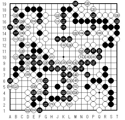 | 第4譜 107〜208 208手完 白中押し勝 |