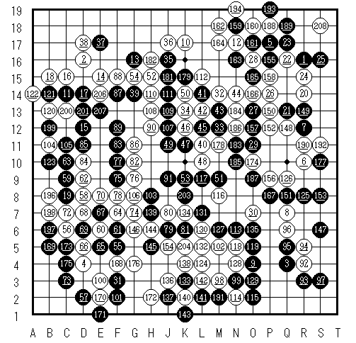 Black: YUKI SHIGENO(2DAN) and HIROSHI YAMASHIRO(9DAN)
