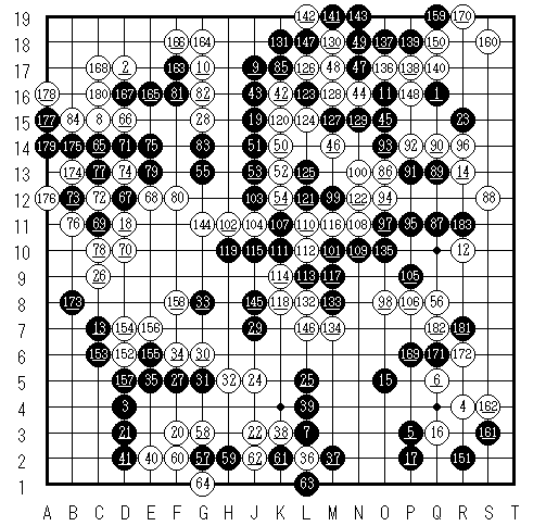 Black: TOMOKO KATO(FEMALE MEIJIN) and HIDEO OTAKE(9DAN)