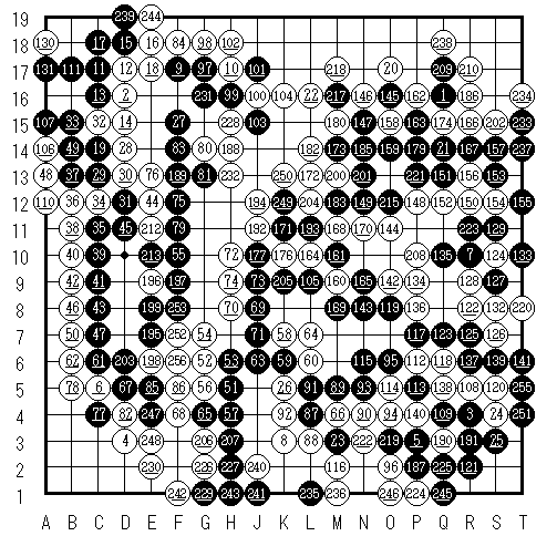 Black wins by 4 1/2 points after White 256