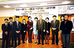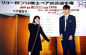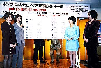 | トッププロ男女16組による夢の対局「リコー杯プロ棋士ペア囲碁選手権1998」の組み合わせ抽選会が去る11月18日、東京・飯田橋のホテルで開催された。今大会も東西の実力者が勢揃い。ペア囲碁独特の華やかでスリリングな対局が期待できそうだ。 |