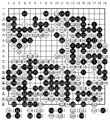 251 moves. White wins by 9.5