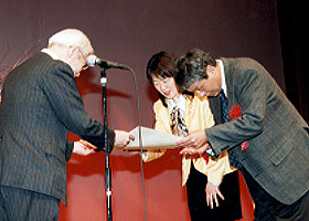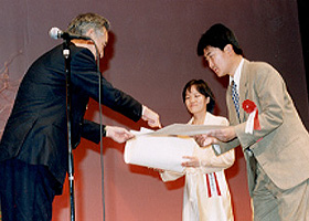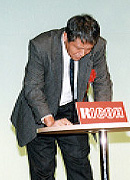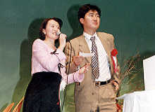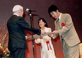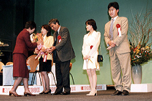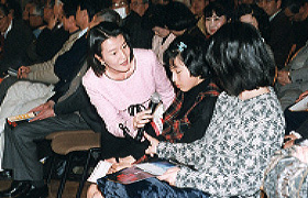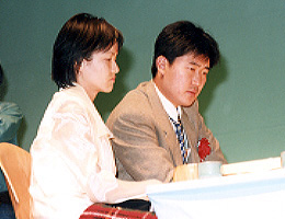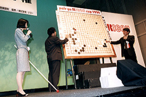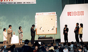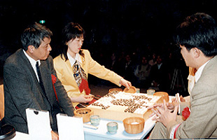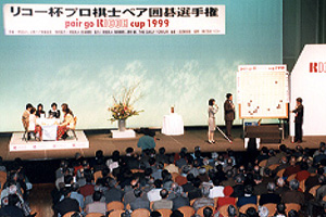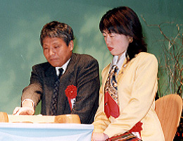 Mr. Kobayashi said,"(As I advanced to the quarterfinals paired with Ms. Yoshida,) I was worrying about what to wear on the finals. To my regret, however, I am acting as a commentator today. By the way, I wonder what makes pair Go interesting. In the past, I used to feel that nothing would make me more exhausted than pair Go because I was always concerned about my partner. But recently, I can play without making myself uneasy. Now I can appreciate how interesting pair Go is."